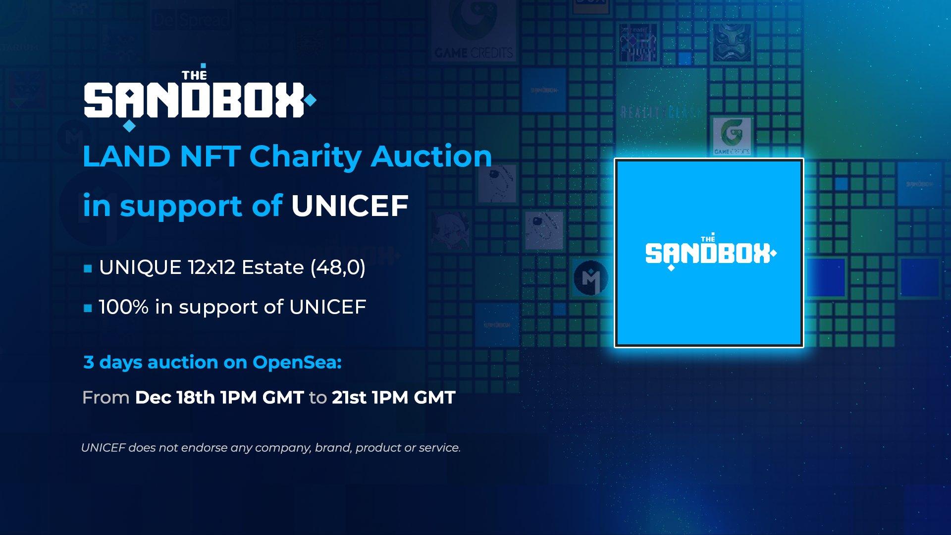 The Sandbox将举行首次LAND NFT土地慈善拍卖为联合国儿童基金会筹款