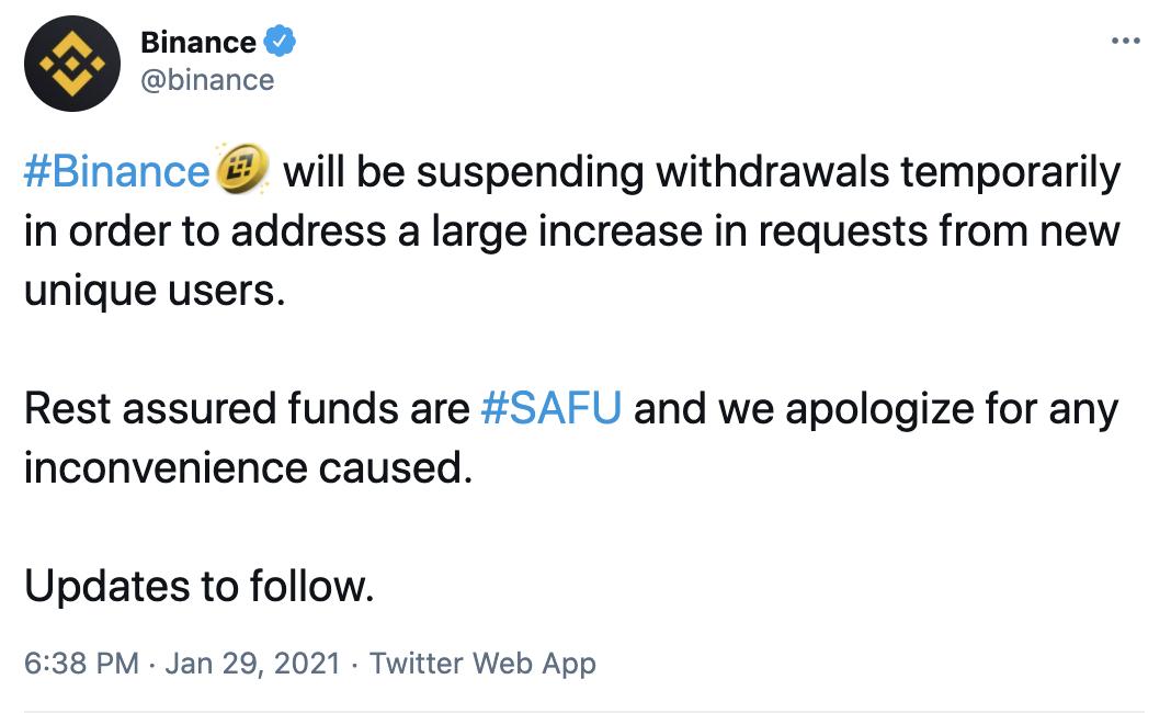 18点59分,币安发推称提现功能已经重新开放。