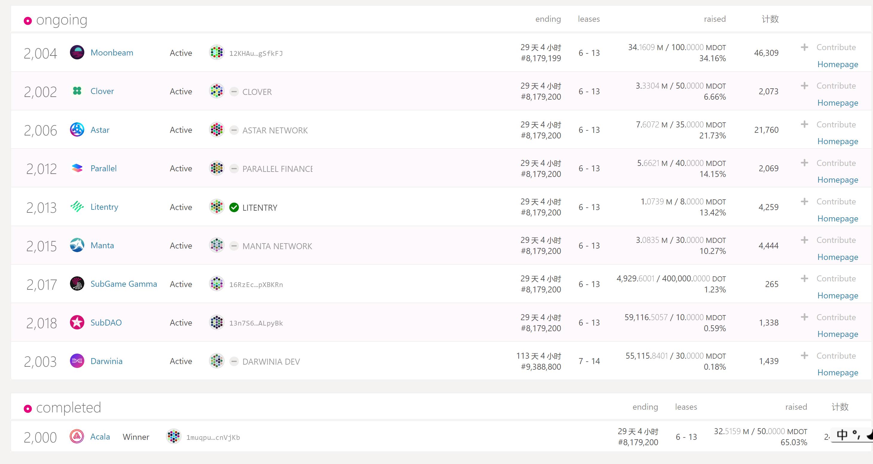ZEC $326.67 -4.50%链捕手消息,波卡官方推特宣布DeFi协议Acala赢得波卡的第一次平行链拍卖,超过 81000 名社区成员为该项目贡献了超过 3200 万个 DOT。(来源链接)