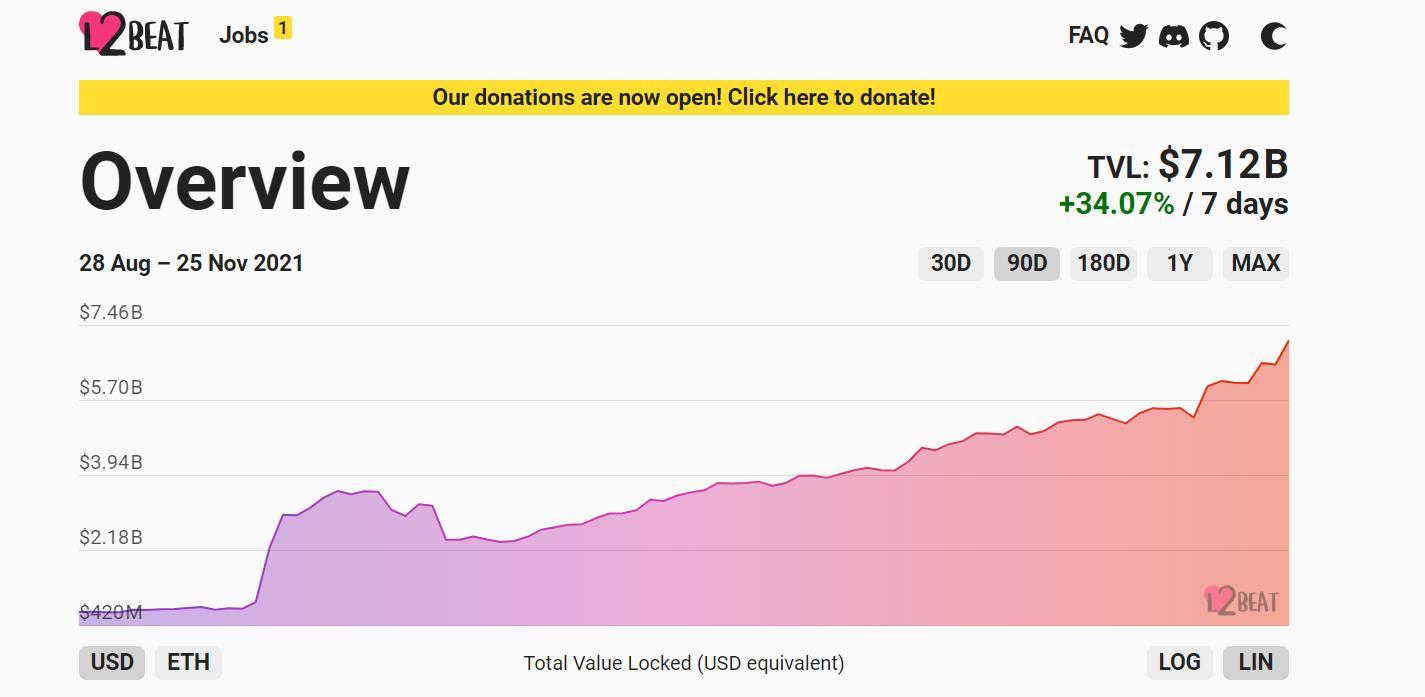 链捕手消息,据 L2BEAT 数据显示,当前以太坊 Layer2 总锁仓量为 71.2 亿美元,创历史新高。其中,锁仓量前三分别为 Arbitrum(28.1 亿美元)、Boba Network(14.3 亿美元)、dYdX(9.6 亿美元)。