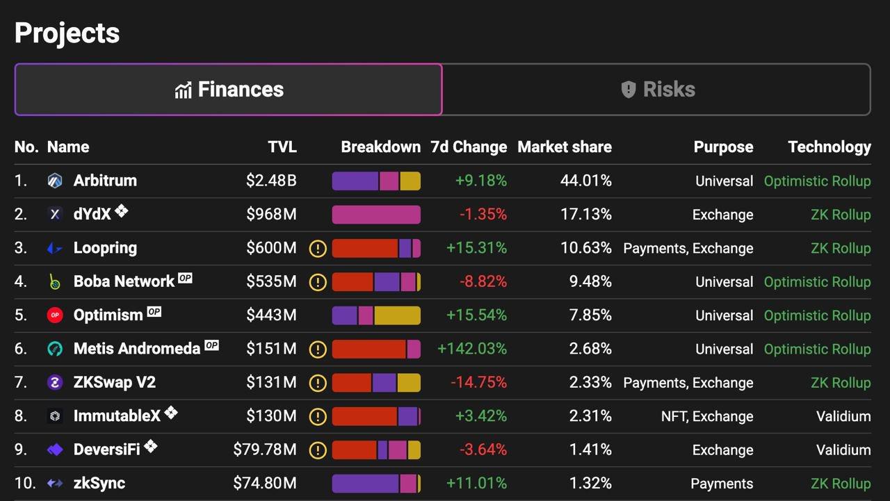链捕手消息,据L2BEAT显示,Layer2协议Metis近7日TVL上涨142%,目前约为1.5亿美元,在所有Layer2项目中排名第六。