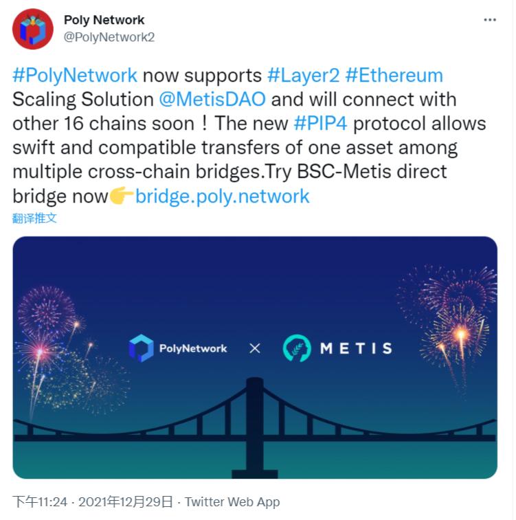 Poly Network 与 Metis 达成合作,现已开放 BSC-Metis 跨链桥