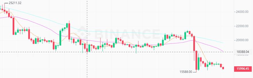 比特币短时跌破 16,000 美元,24 小时跌幅 4.06%