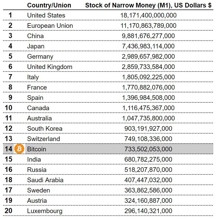 ChainCatcher 消息,据比特币信用卡公司 Bold 分析,截至 12 月,比特币成功跻身全球前 15 大货币之列,成为全球前 20 大货币中唯一的加密货币。根据 CEIC 和 CoinGecko 的数据,截至 11 月 19 日,比特币市值已达 7325 亿美元。