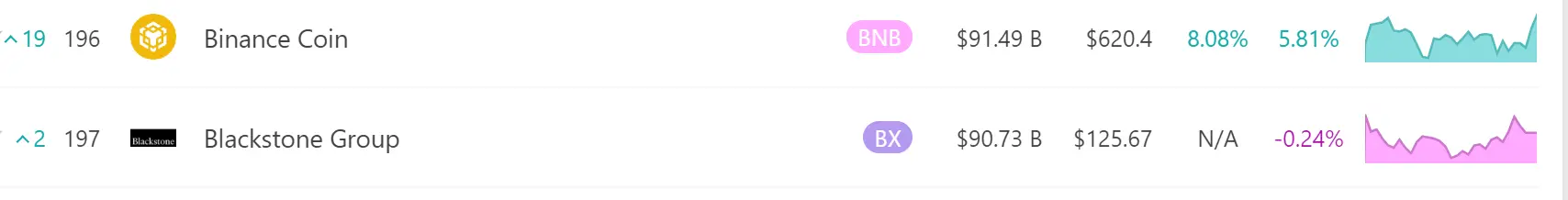 数据:BNB 市值超越投资管理公司 Blackstone Group