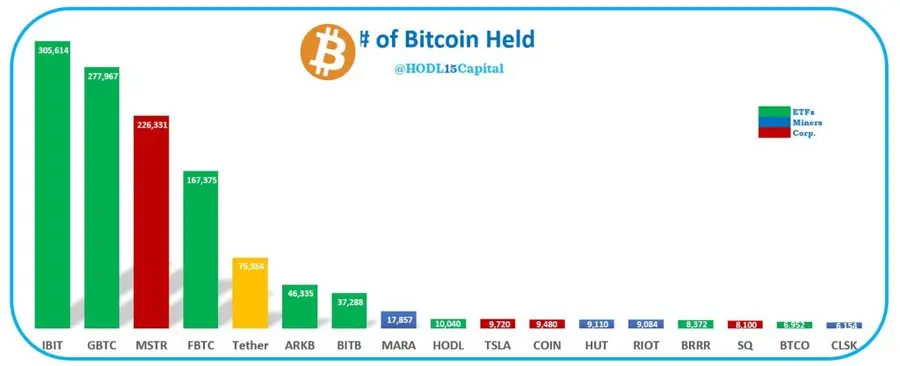 - 贝莱德(IBIT):305614 枚 BTC;