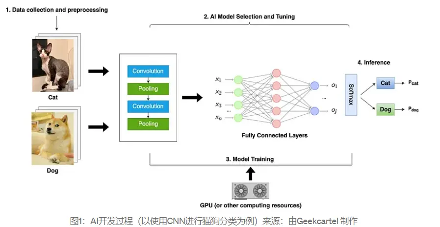 本文的重点在于使用区块链解决生产关系问题,AI 解决生产力问题的项目,这些项目本身提供 AI 产品,同时基于 Web3 经济模型作为生产关系工具,二者相辅相成。我们将这类项目归类为 Web3-AI 赛道。为了使读者更好的理解 Web3-AI 赛道,Geekcartel 将展开介绍 AI 的开发过程和挑战,以及 Web3 和 AI 结合如何完美解决问题和创造新的应用场景。