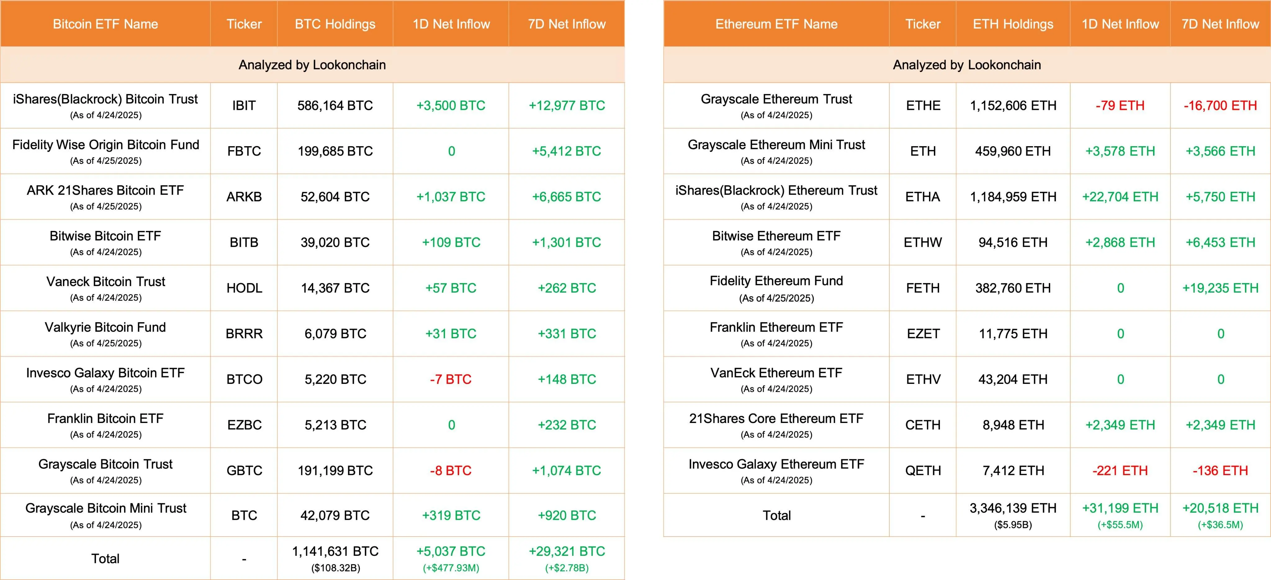 数据:今日美国比特币现货 ETF 净流入 5037 枚 BTC,以太坊现货 ETF 净流入逾 3.11 万枚 ETH