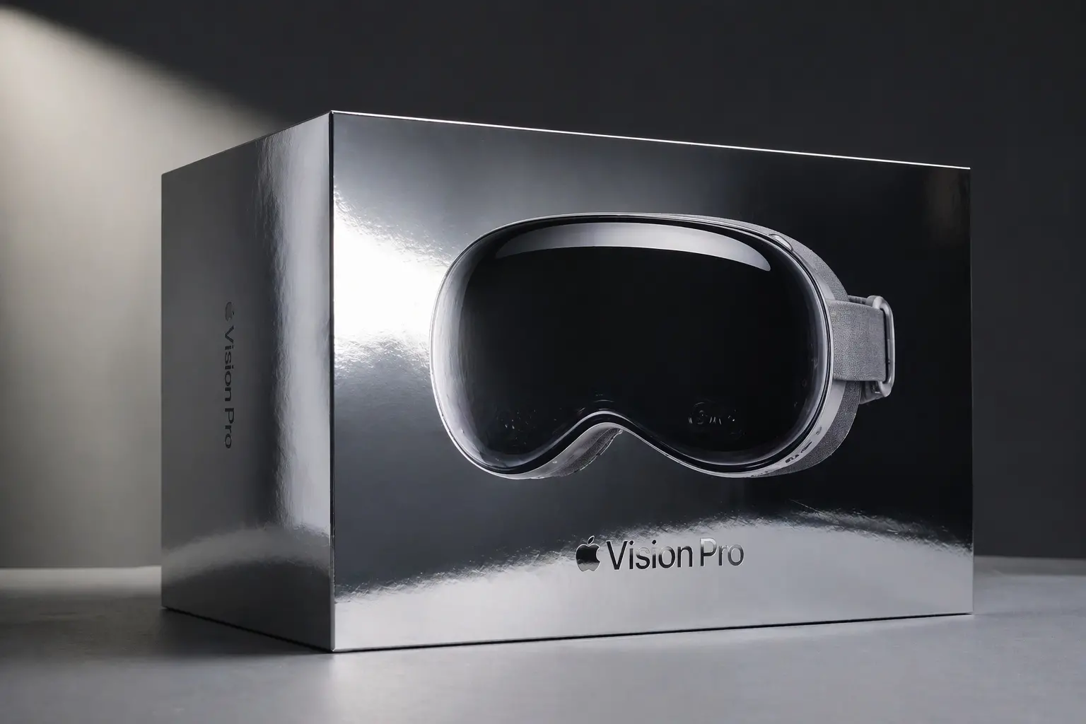 测试prompt(产品摄影+人物写实): “苹果Vision Pro包装盒特写,镜面金属反光,品牌文字清晰可见,工作室专业灯光,摄影棚环境,极致真实感。”