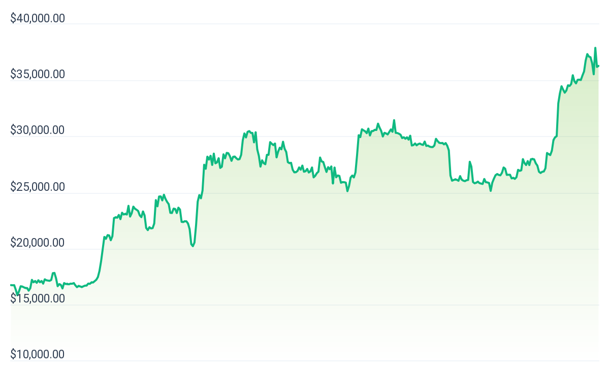 However, this rejection has not dampened market enthusiasm, as BTC's price surged over 5% on the afternoon of the 16th, reaching $37,500.