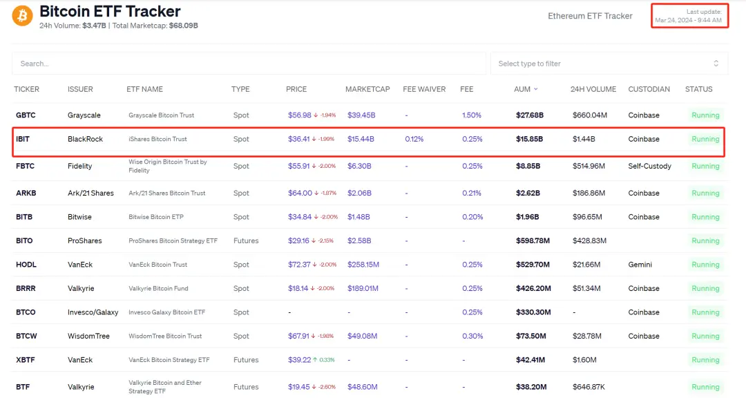 However, on January 11, 2024, BlackRock, along with several other institutions, launched the first batch of Bitcoin spot ETFs in the U.S., named iShares Bitcoin Trust (IBIT), directly reversing the awkward situation of spot Bitcoin ETF applications being rejected for the past decade and opening a new chapter in crypto development.