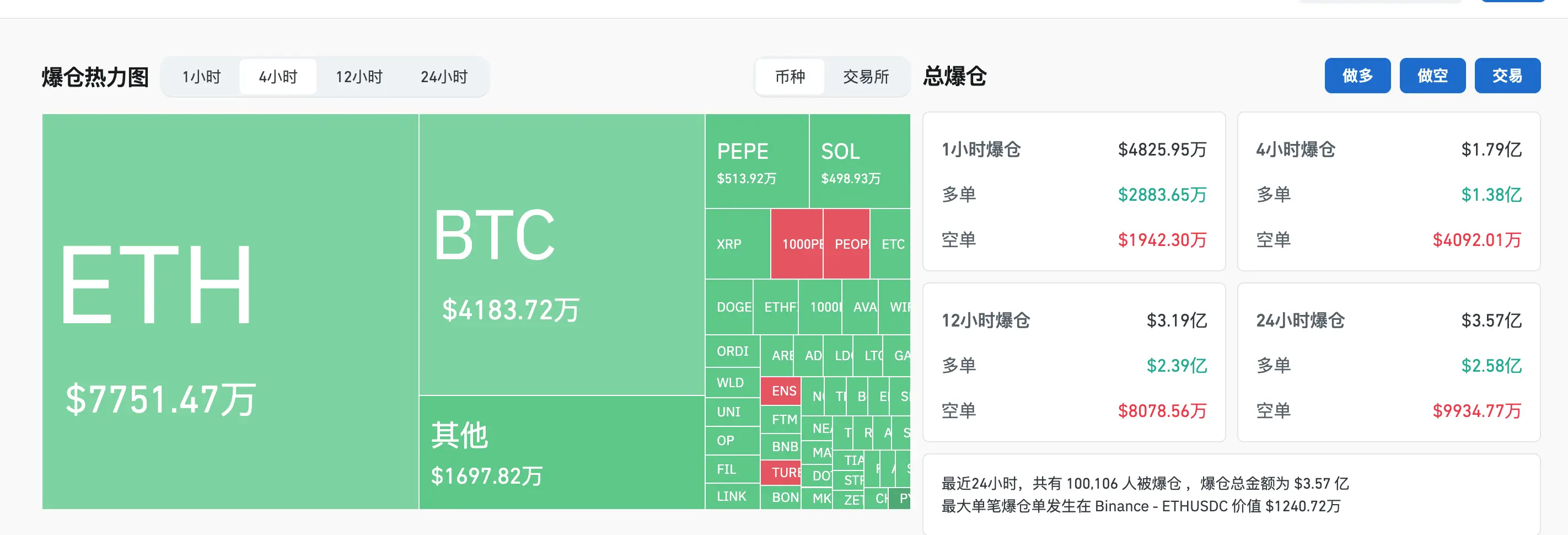 ChainCatcher news, according to coinglass data, the total liquidation in the past 4 hours reached 179 million USD, with long positions liquidating 138 million USD and short positions liquidating 40.92 million USD. Among them, ETH liquidations amounted to 77.51 million USD, with ETH long positions liquidating 58.42 million USD and ETH short positions liquidating 19.08 million USD.