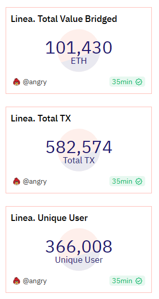 データ:Lineaメインネットは10万ETHを超え、インタラクションアドレス数は36万を超えました。