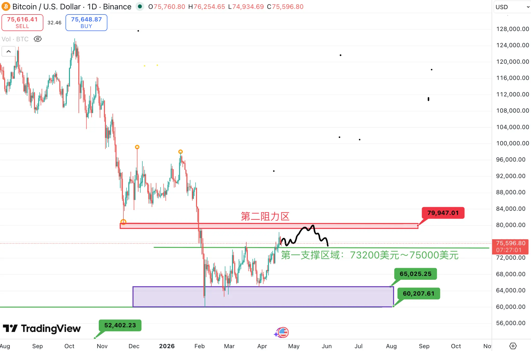 鍵はBTCが方向を選ぶかどうかです:上方では78Kの抵抗レベルに注目し、有効に突破すればさらなる上昇が期待されます;下方では75Kの支持レベルに注目し、これを下回ると73K付近まで戻る可能性があります。ETHは追随性が強く、BTCが調整すればETHは大確率で2.3Kの下をテストします。全体的な判断:高位での振動の後、方向を選択しようとしており、短期的には横ばいではなく範囲突破に偏っています。