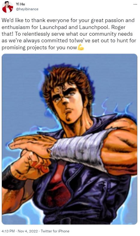 ChainCatcher 메시지, 바이낸스 공동 창립자 허이(何一)가 소셜 미디어 플랫폼에 글을 올리며, "Launchpad와 Launchpool에 대한 여러분의 열정에 감사드립니다. 바이낸스는 커뮤니티의 요구를 충족시키기 위해 노력하고 있습니다. 현재 사용자에게 양질의 프로젝트를 찾고 있습니다."라고 전했습니다.(출처 링크)