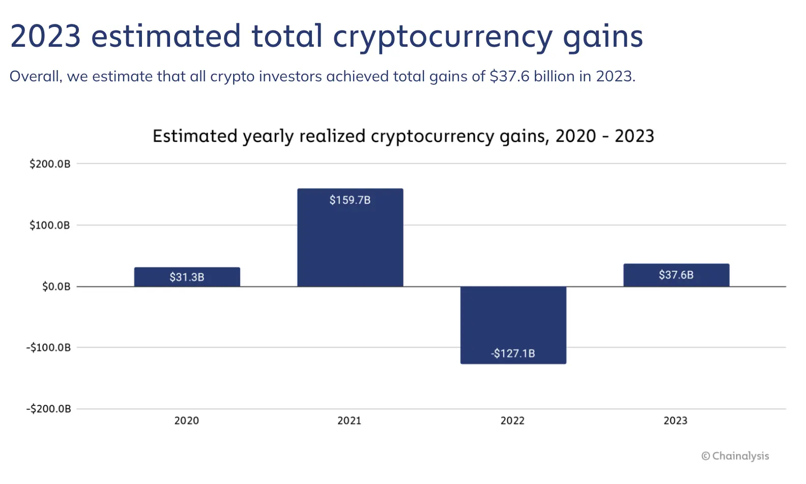 전반적으로, 우리는 모든 암호화폐 투자자들이 2023년에 총 376억 달러의 수익을 올릴 것으로 추정합니다.