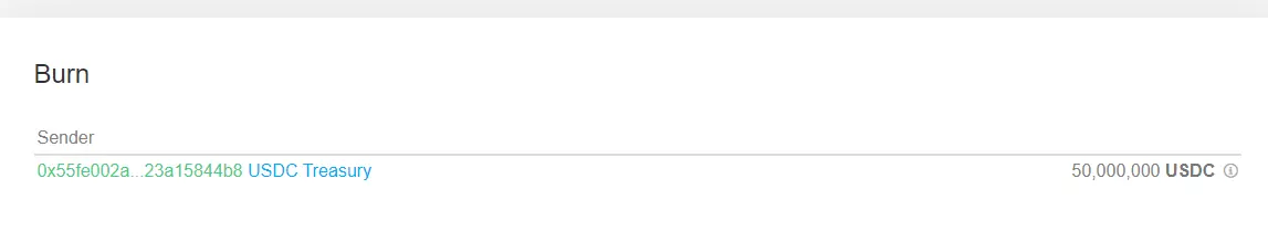 ChainCatcher 메시지에 따르면, Whale Alert가 모니터링한 결과, USDC Treasury는 오늘 이더리움 블록체인을 통해 5000만 개의 USDC를 소각했으며, 그 가치는 5000만 달러입니다.