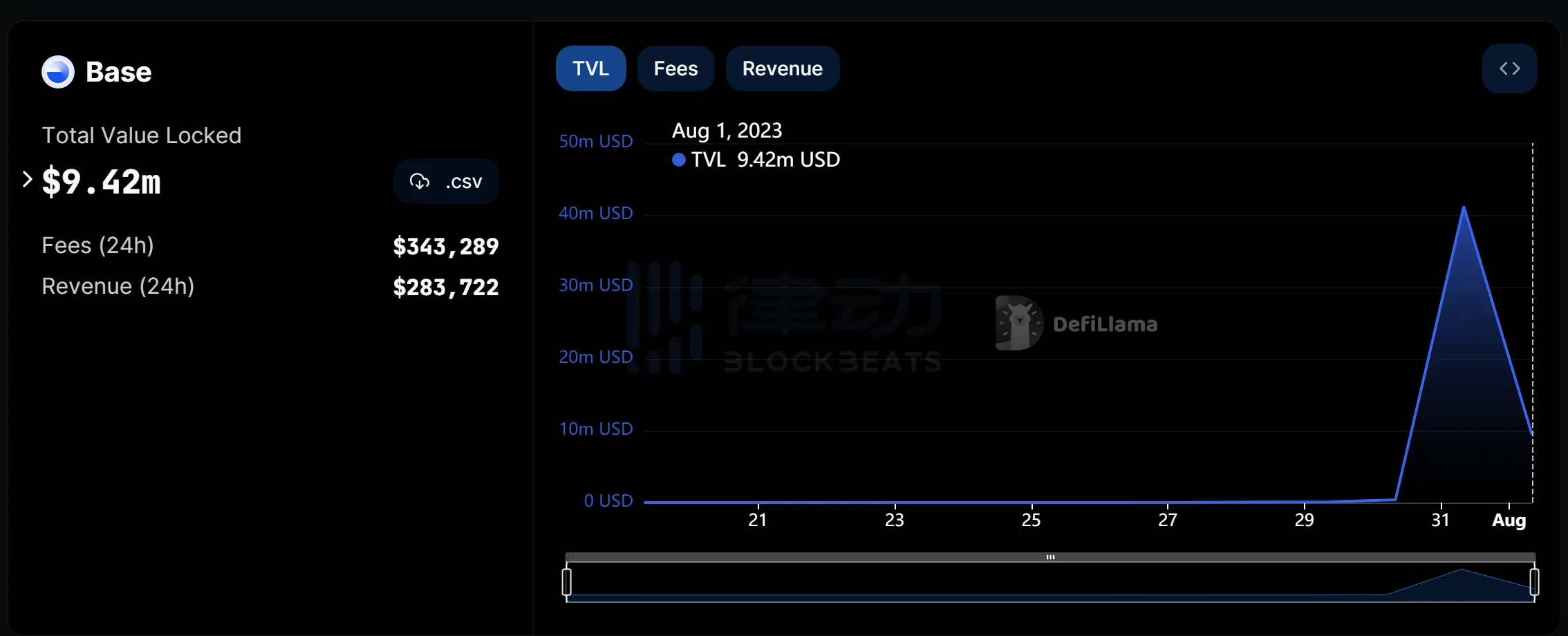 但是僅僅過了 3 個多小時,$BALD 就露出了獠牙將一切毀滅。項目方突然在 7 分鐘內撤走了總計 8660 枚 ETH 和 1.79 億枚 $BALD 的流動性,$BALD 的價格大幅下跌,最大跌幅曾達到 80%。目前,根據 dexscreener 上的數據,$BALD 的流動性資金池內僅剩 12 ETH,Base 網絡的 TVL 也受此影響一落千丈,從 4200 萬美元左右跌到了 942 萬美元。