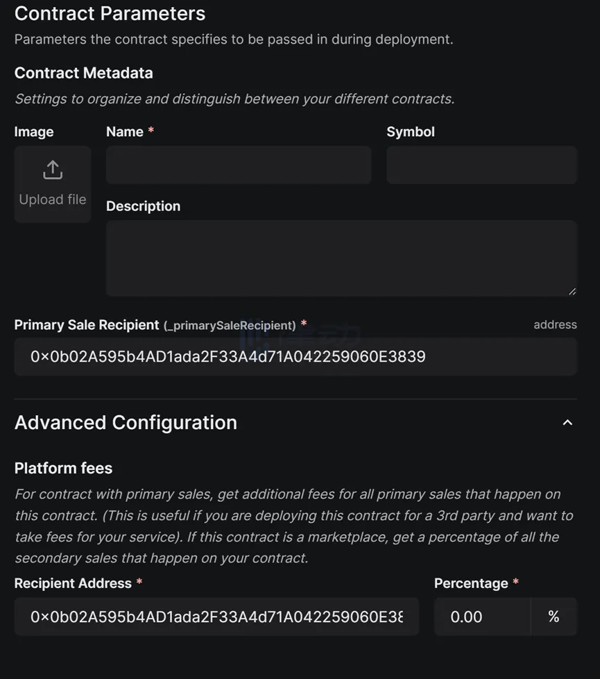 Primary Sale Recipient:Token 預售的收入地址。由於我們選擇的「Token」合約是不帶預售價格的,這裡其實也沒用。