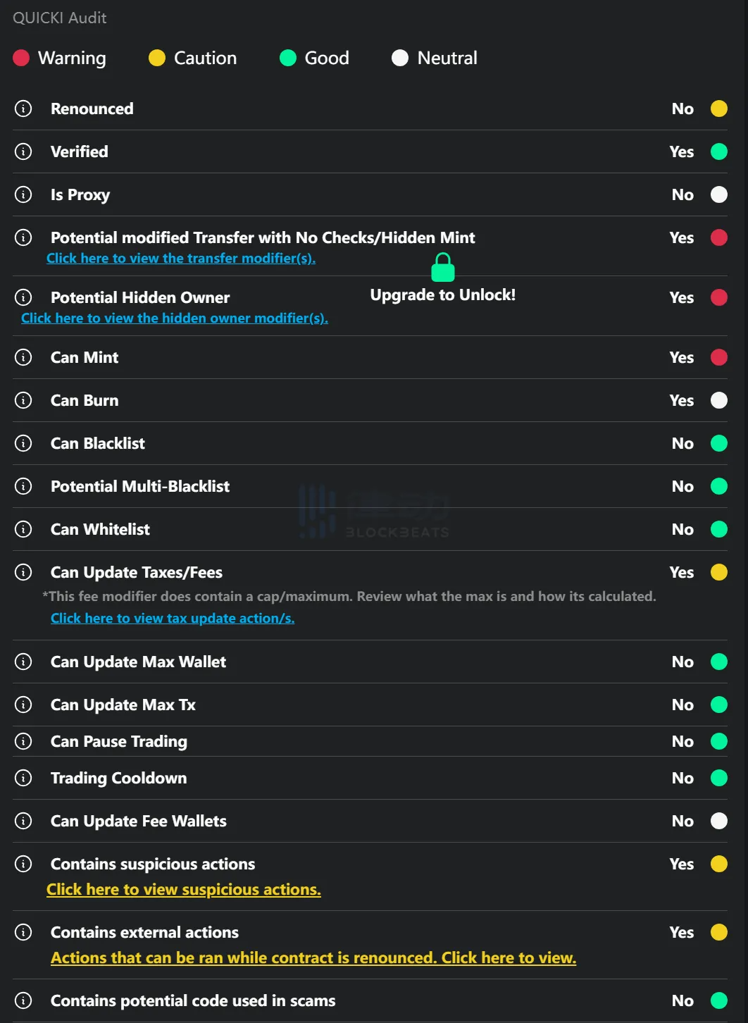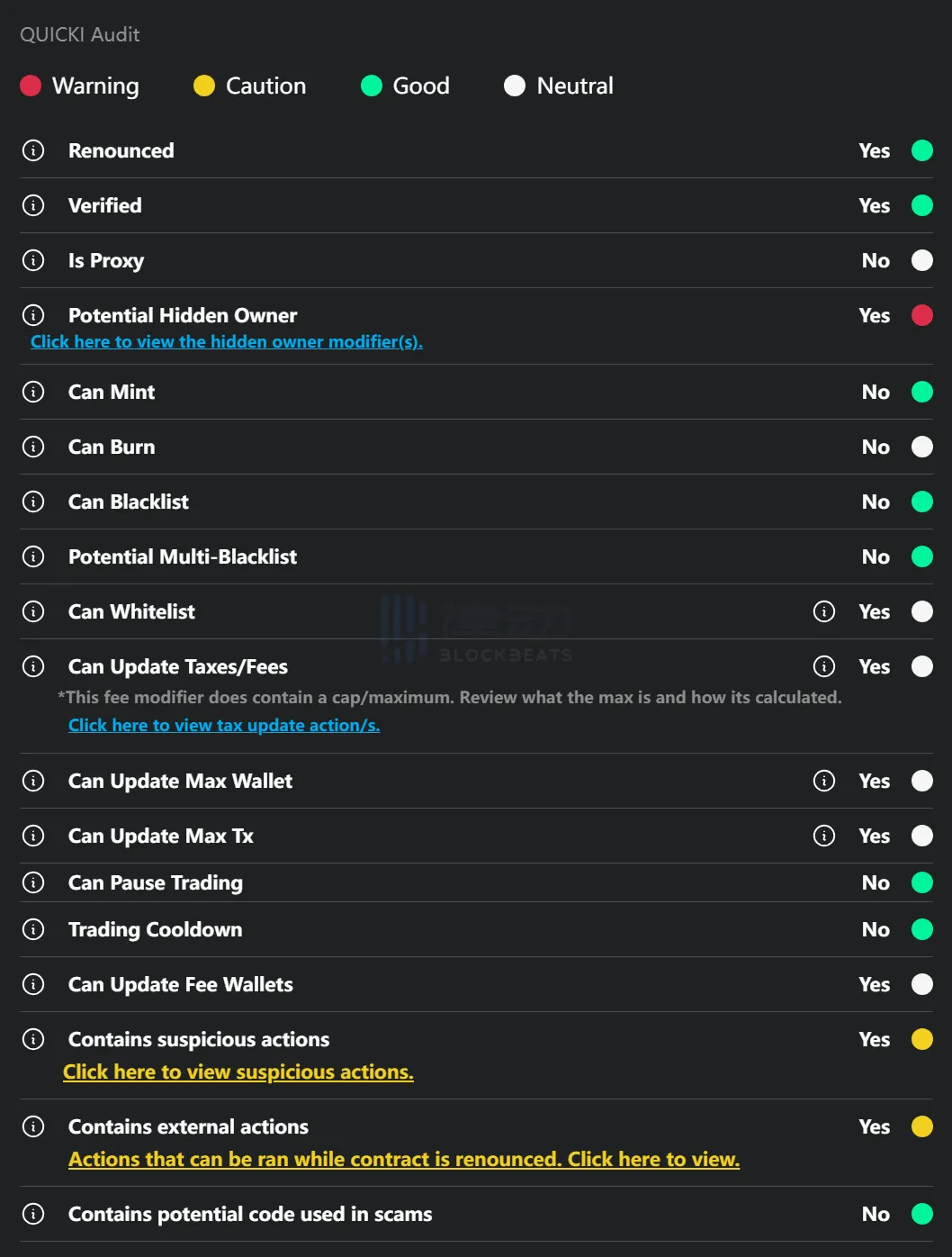 用 Quick Intel 檢測一下 $BALD 的合約,情況會好很多: