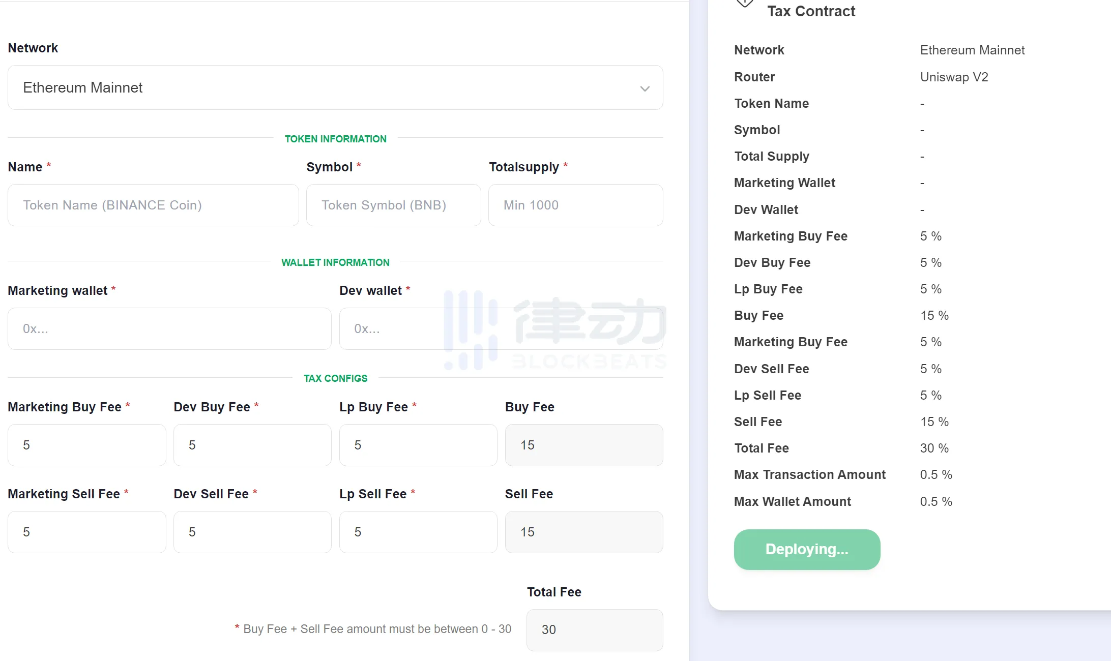 Thirdweb 沒能實現買入/賣出交易稅功能,於是我搜尋了一番,發現了確實有可以設置買入/賣出交易稅的一鍵發 Token 工具,太智能了…
