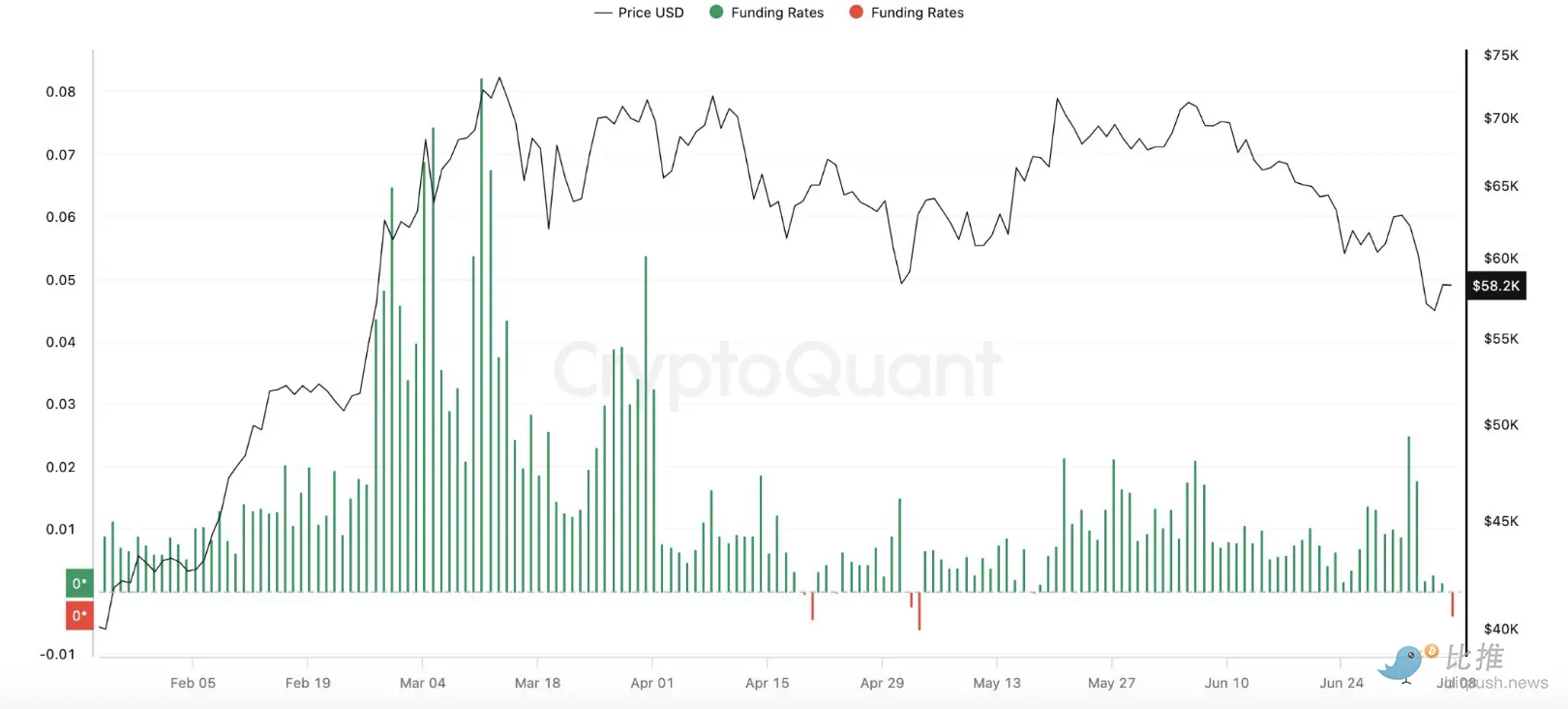 Bitfinex 提供的數據顯示,自 5 月 1 日觸底以來,BTC 永續合約的資金費率首次變為負值。