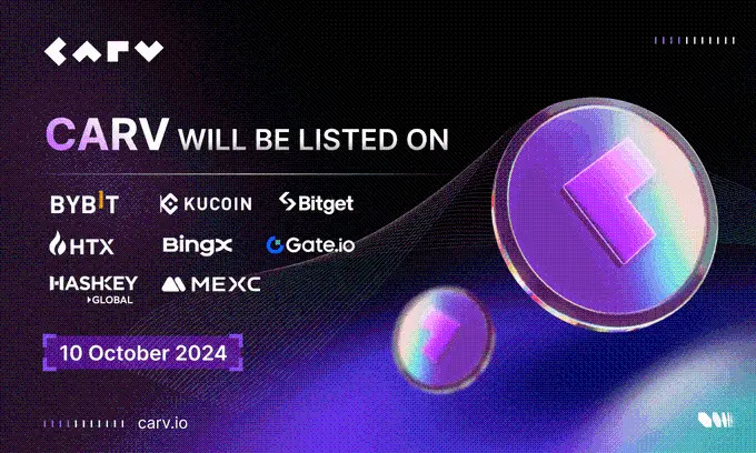據悉,$CARV 現已在 Bybit、kucoin、HTX、 BingX、Bitget、Gate、HashKey Exchange、MEXC 等上架交易。